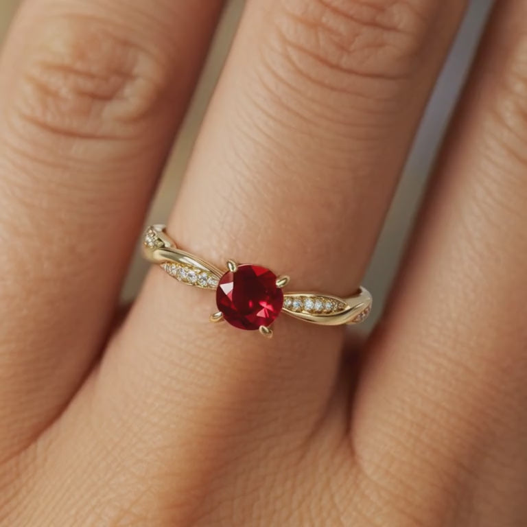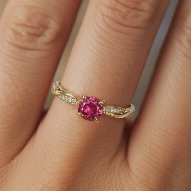 Twisted Band 1CT Round Cut Red Moissanite Ring
