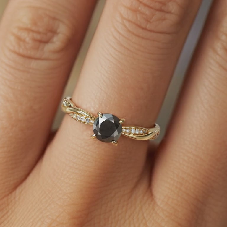 Twisted Band 1CT Round Cut Black Moissanite Ring