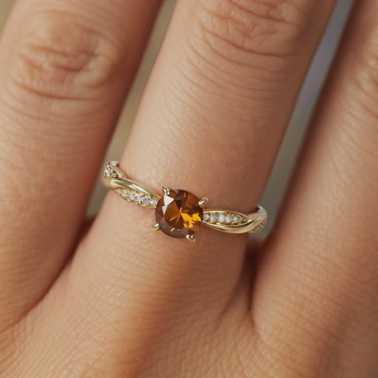 Twisted Band 1CT Round Cut Yellow Moissanite Ring