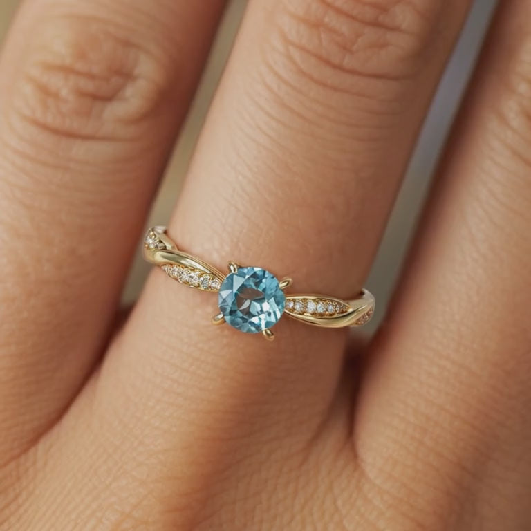 Twisted Band 1CT Round Cut Blue Moissanite Ring