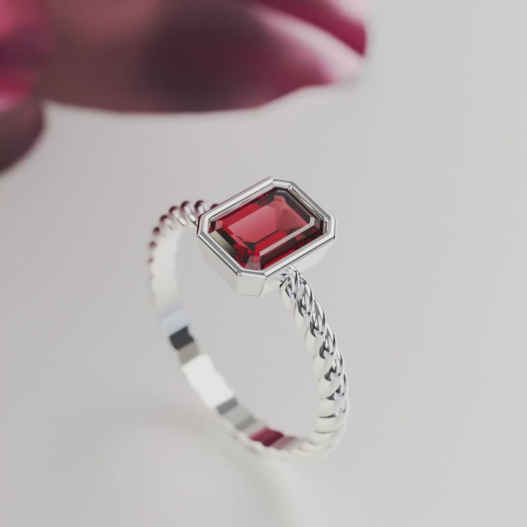 Der Solitär: Rubinring im Smaragdschliff – S925 Sterling Silber
