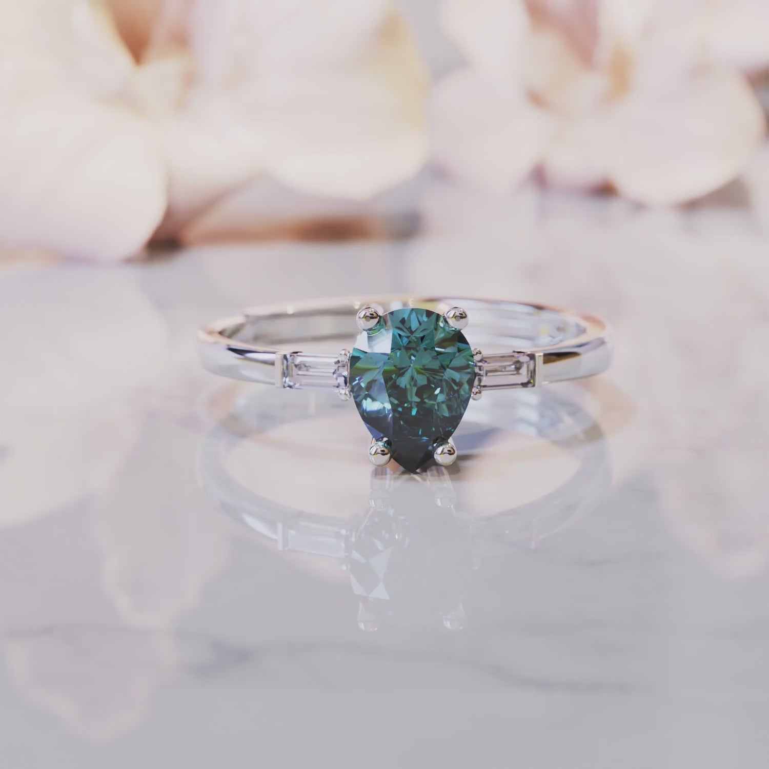 Silberner Verlobungsring mit Moissanit im Herzschliff