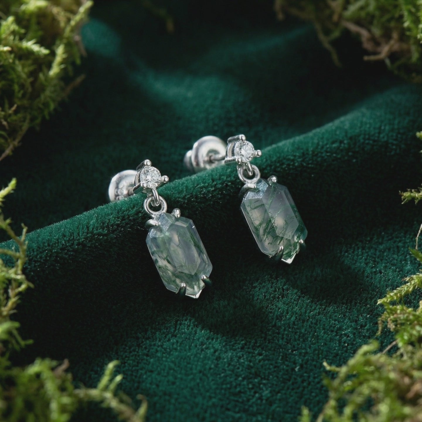 Steigern Sie Ihre Eleganz mit unseren Ohrringen aus natürlichem Moosachat.