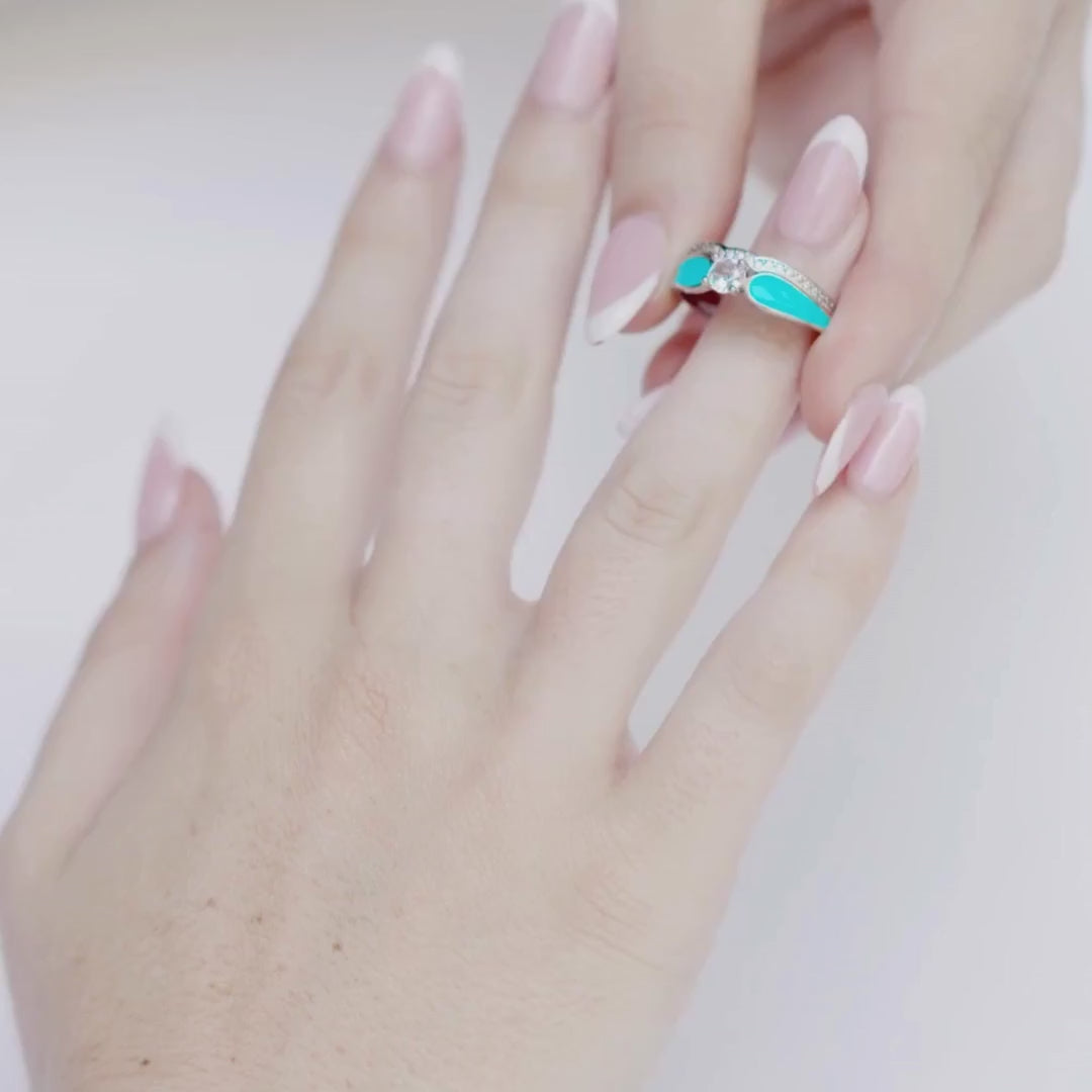 Erleben Sie die Eleganz von 925er Sterlingsilber in diesem zweiteiligen Ringset. Das leuchtende Blau der Lagunen wird durch den türkisfarbenen Farbton eingefangen. Die edlen Diamanten glänzen wie Tropfen in der Sonne. Doch gerade die Dualität macht den Ring so besonders. Tragen Sie die Ringe übereinander für ein exquisites Statement oder lassen Sie sie einzeln an benachbarten Fingern glänzen. Die Wahl zeugt von Ihrem Stil und Flair.