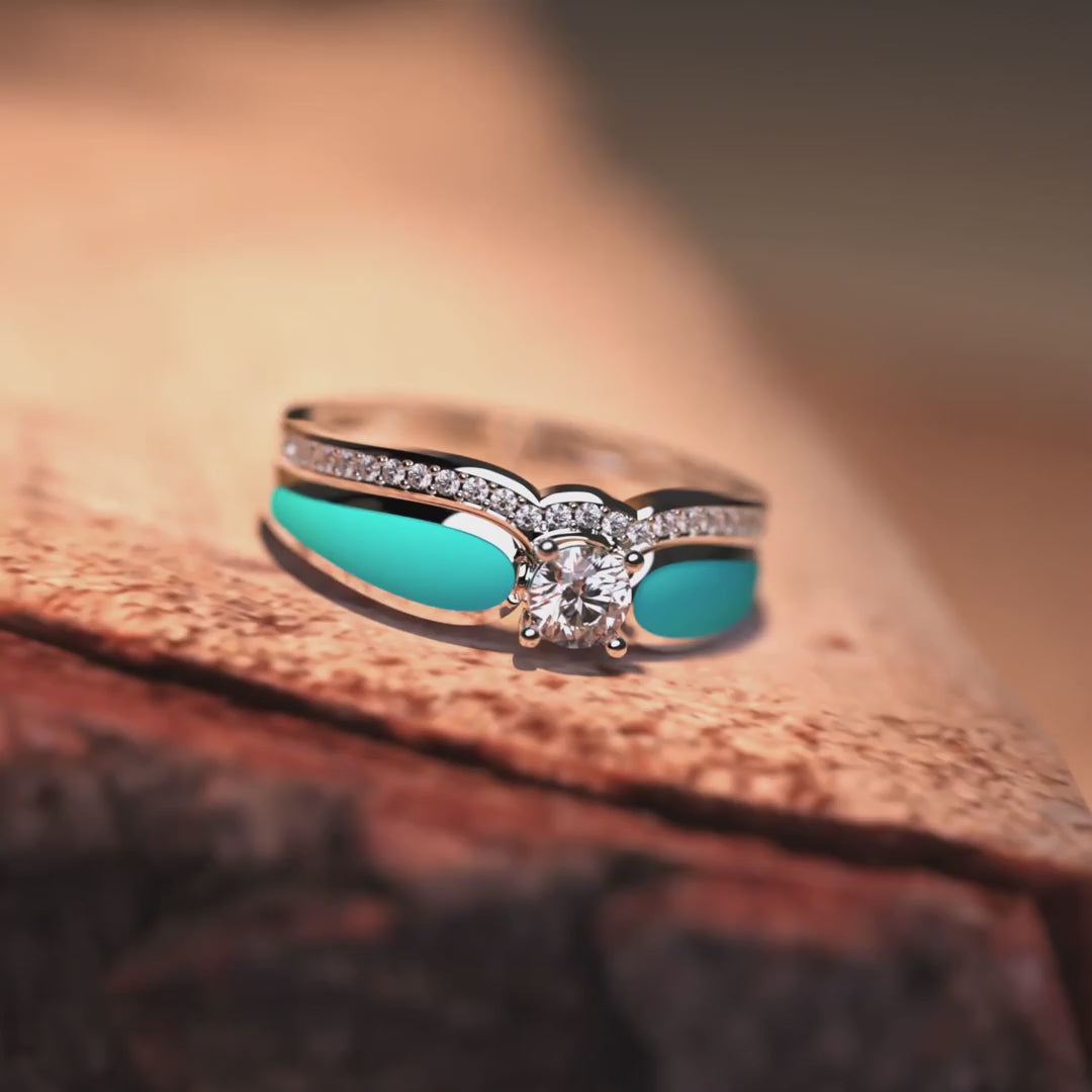 Zwei Teile, unzählige Tragemöglichkeiten, ein einziger Zweck – sind Sie bereit, uns dabei zu helfen, die Welt mit dem zweiteiligen Blue Lagoon Turquoise-Ring zu verändern?