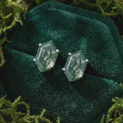 Ohrstecker im Sargschliff aus natürlichem Moosachat - S925 Sterling Silber