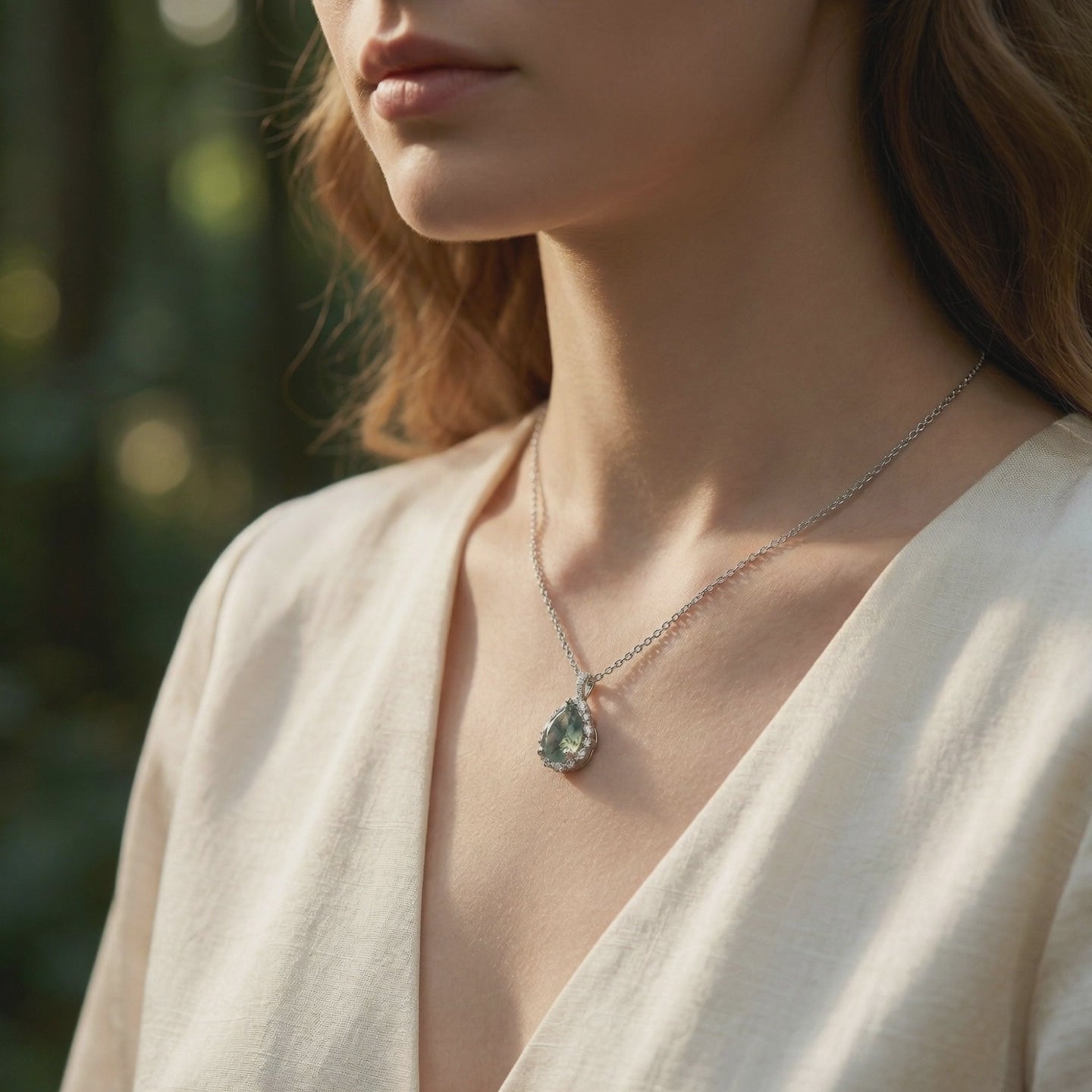 Ätherische Waldmoosachat-Tropfenanhänger-Halskette - S925 Sterling Silber