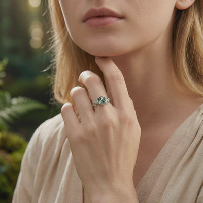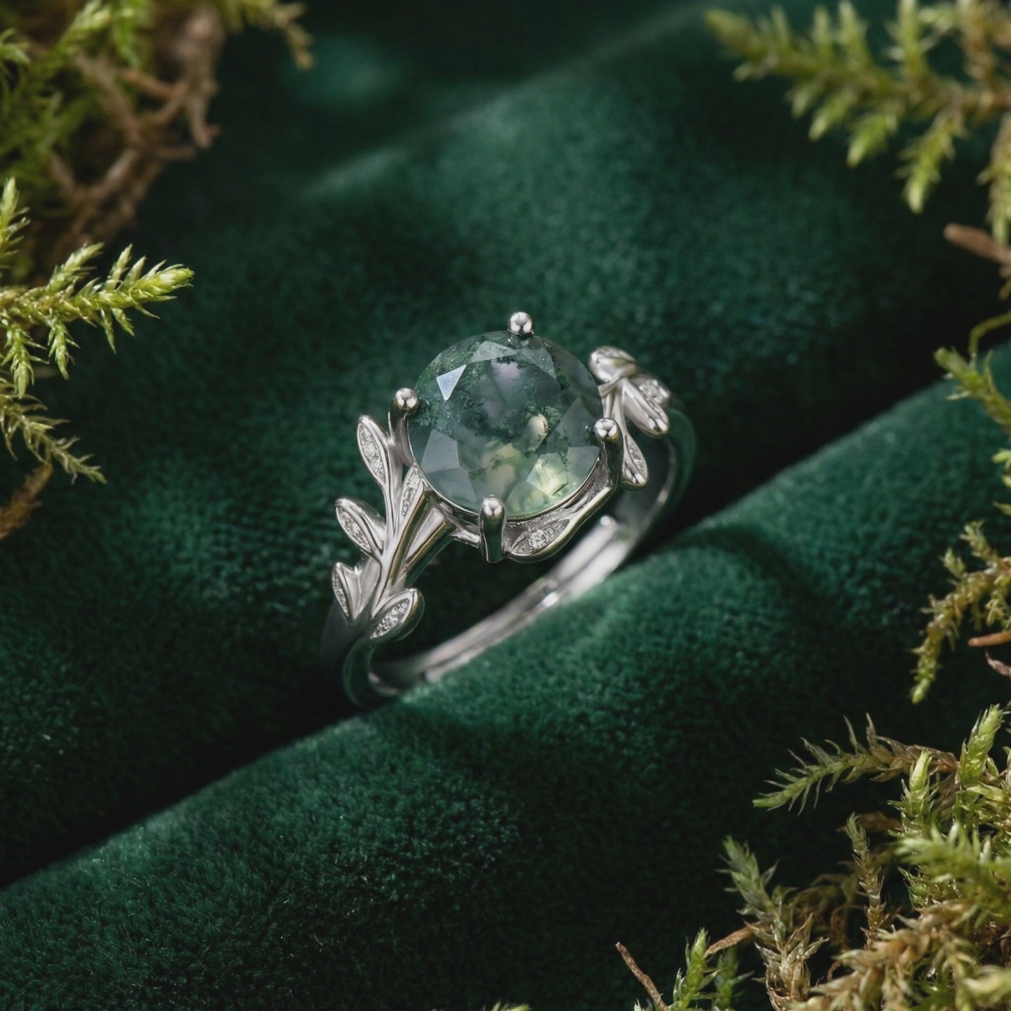 Moss Agate ranks 6.5–7 on the Mohs hardness scale — durable enough for daily wear with mindful handling. We engineer every setting with secure prongs or bezels specifically to protect the stone's edges.