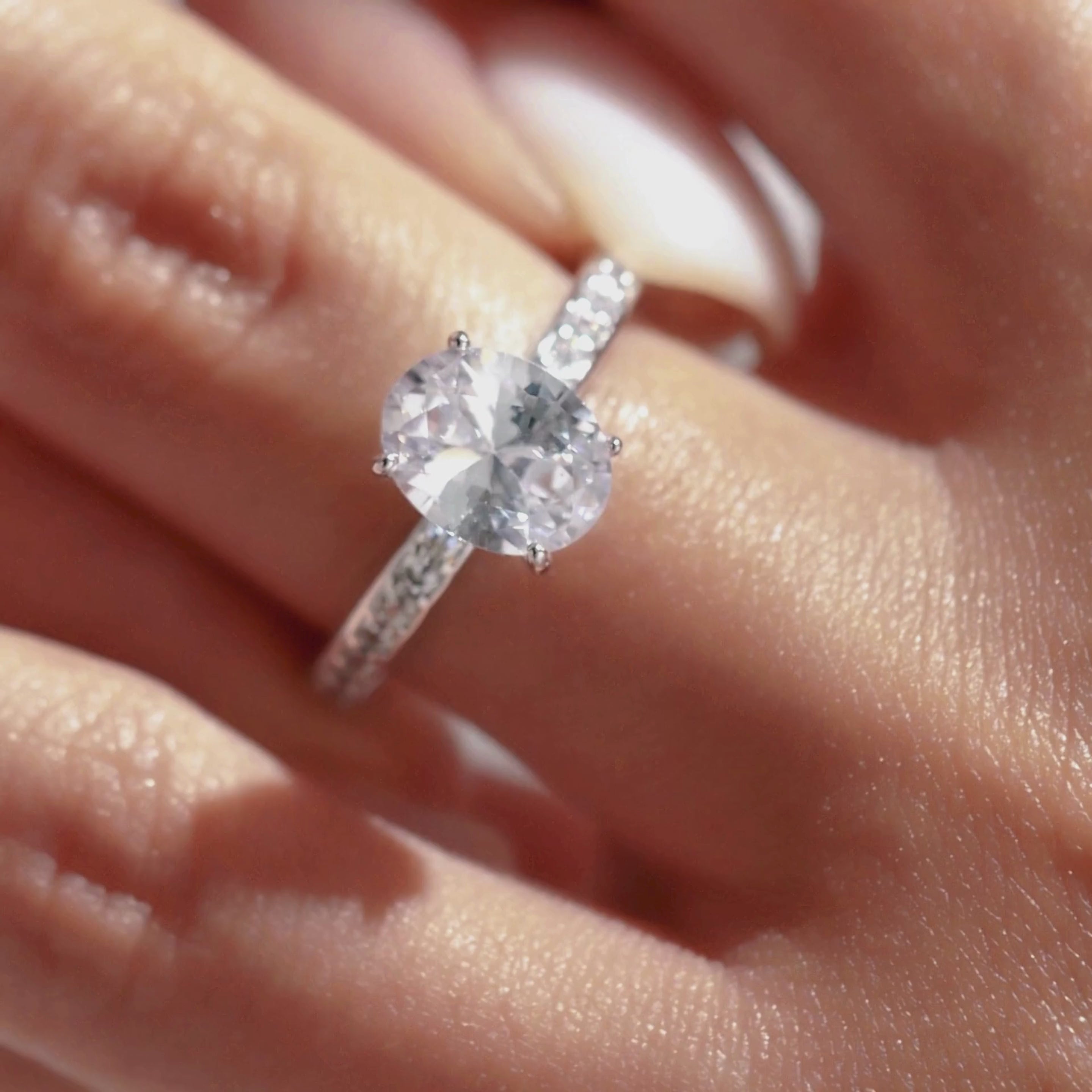 Der Lumine Grace strahlt Eleganz und Charme aus. Dieser Eternity-Ring aus 925er Sterlingsilber besticht durch einen ovalen Kunstdiamanten in Krappenfassung. Die Edelsteine auf dem Ring selbst sorgen für brillantes Funkeln aus jedem Blickwinkel.