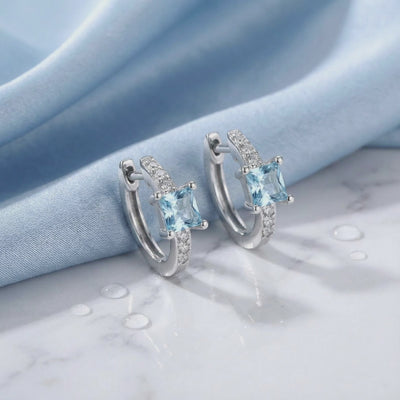 Mined aquamarines are often pale or contain visible inclusions. We engineered the Aira Huggies to match the absolute ideal: the deep, clear saturation of a museum-grade March birthstone. These earrings feature a precision-cut square center stone calibrated for maximum refractive index and visual fire.