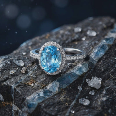 You don't need an occasion to wear extraordinary gemstones; you just need the right ring. The Ariella features a substantial 7x9mm natural topaz, expertly faceted in a classic oval cut. Because natural topaz possesses exceptional, eye-clean transparency, our lapidaries utilize this precision cut to allow light to travel deeply into the stone, refracting a vivid, oceanic blue hue that demands attention.