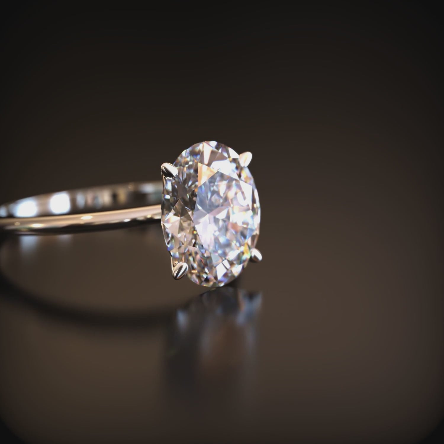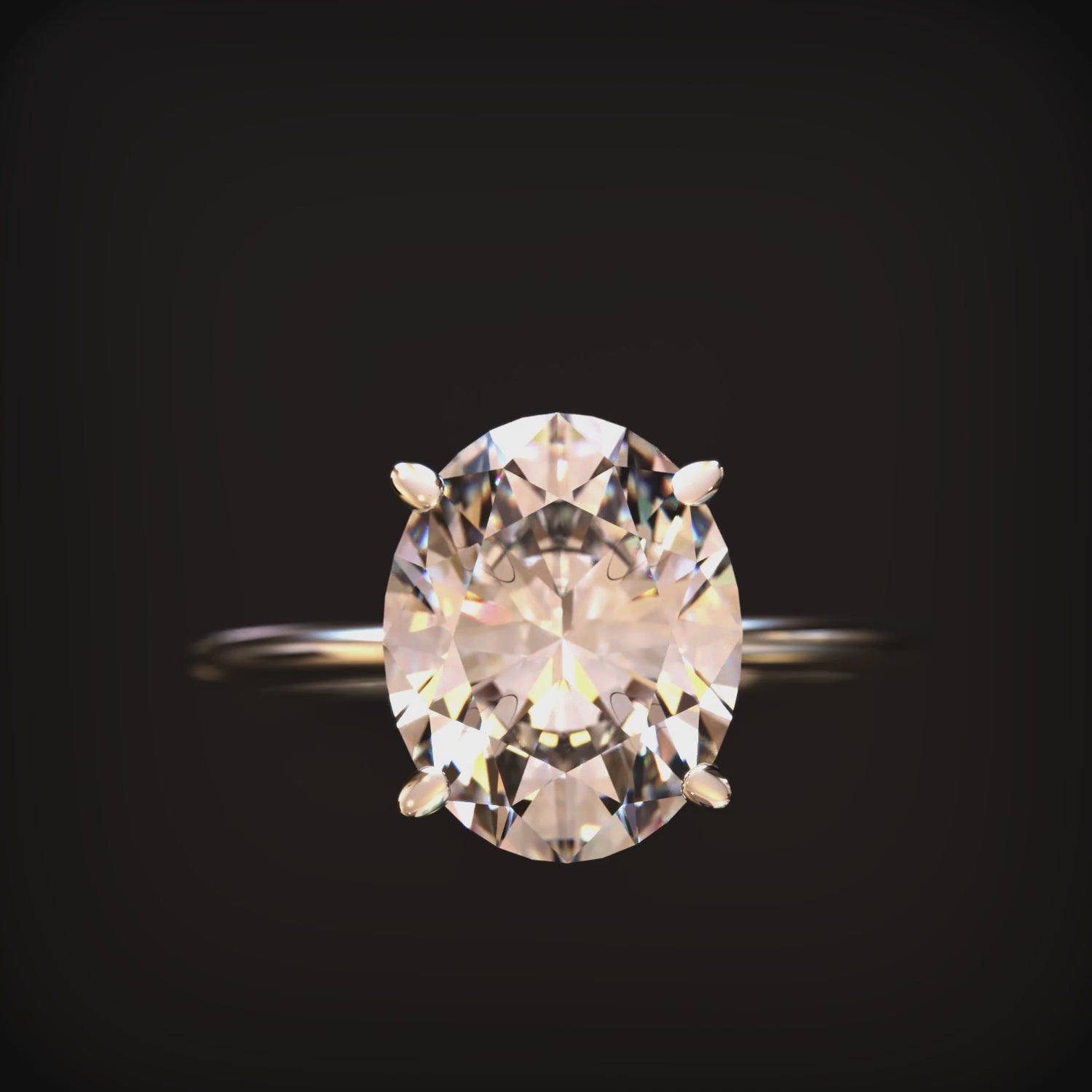- CT Size: The Bella features a 3 CT Oval Cut Moissanite. The side stones are round shape. We accept custom requests if you wish for a different CT size. Check the details above for specifics on this ring.
