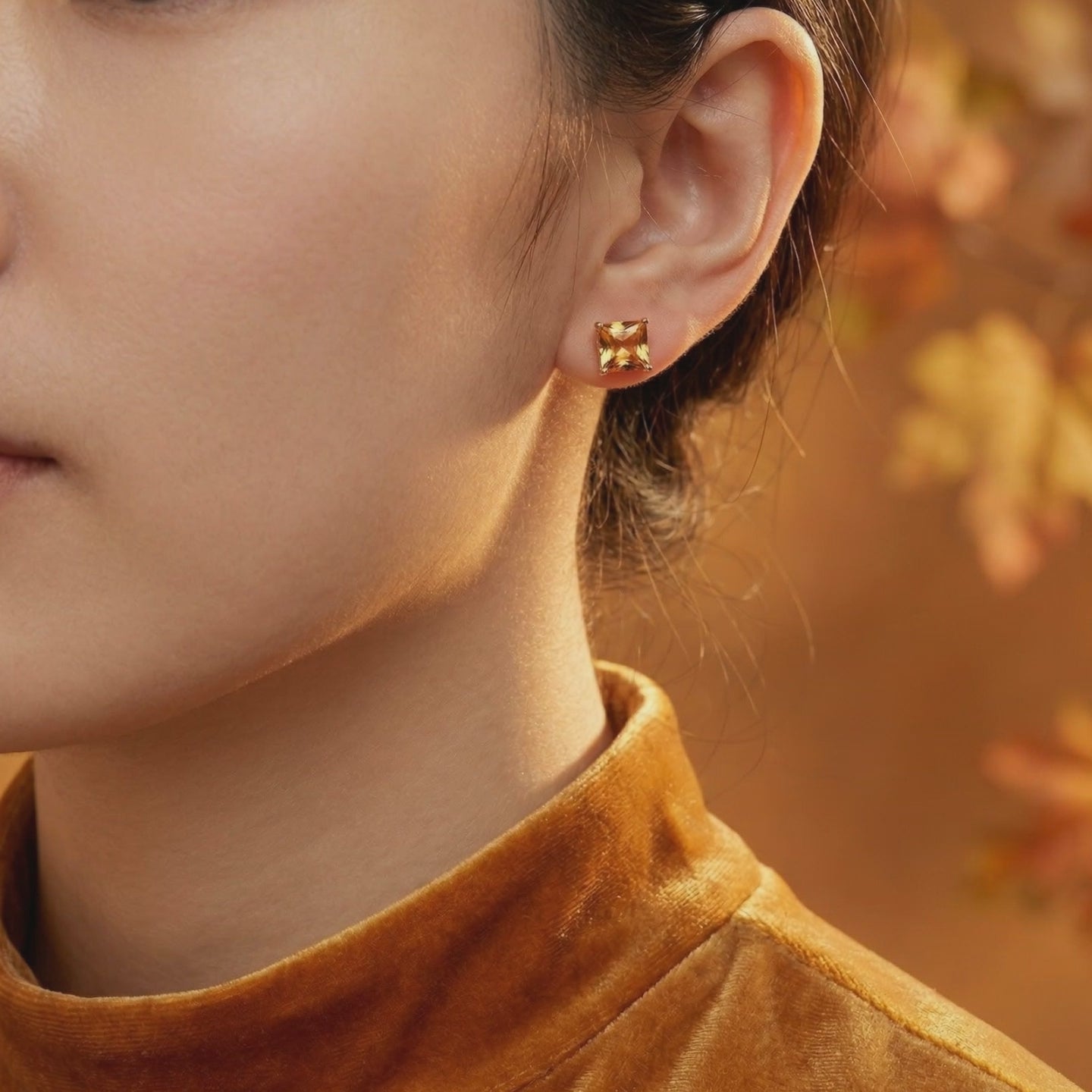Mined topaz is frequently inconsistent, often displaying pale or uneven color. These stud earrings feature Simulated Topaz, engineered to capture the ideal Imperial honeyed warmth—a deep, golden orange saturation that nature rarely delivers with this level of clarity.