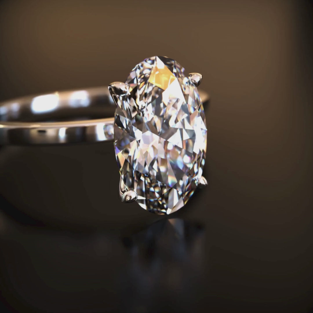 Ein schlichter Ring im Ovalschliff hat noch nie so funkelnd ausgesehen. Der Elena ist wie ein Tropfen reinen Sternenlichts und überstrahlt buchstäblich die hellsten Diamanten.