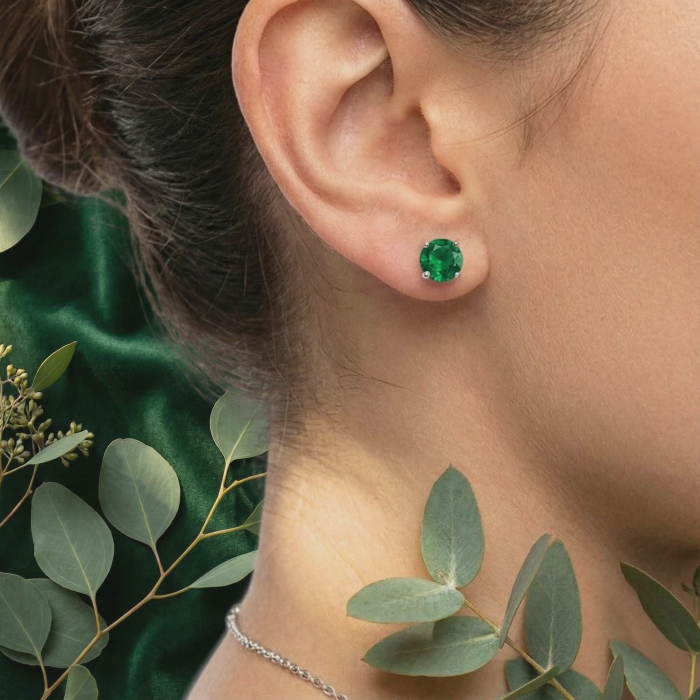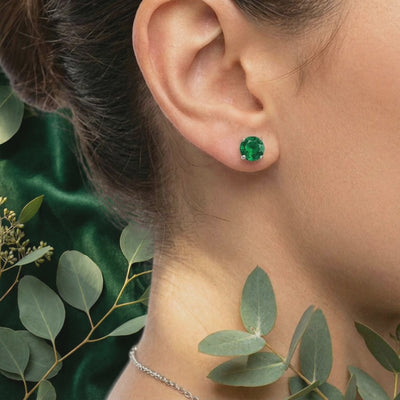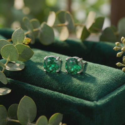 Nature rarely delivers a flawless emerald. Most mined stones are riddled with inclusions and cracks. We engineered the solution. These May birthstone earrings feature Simulated Emeralds color-calibrated to the absolute ideal — a deep, rich forest green that nature couldn't consistently produce.
