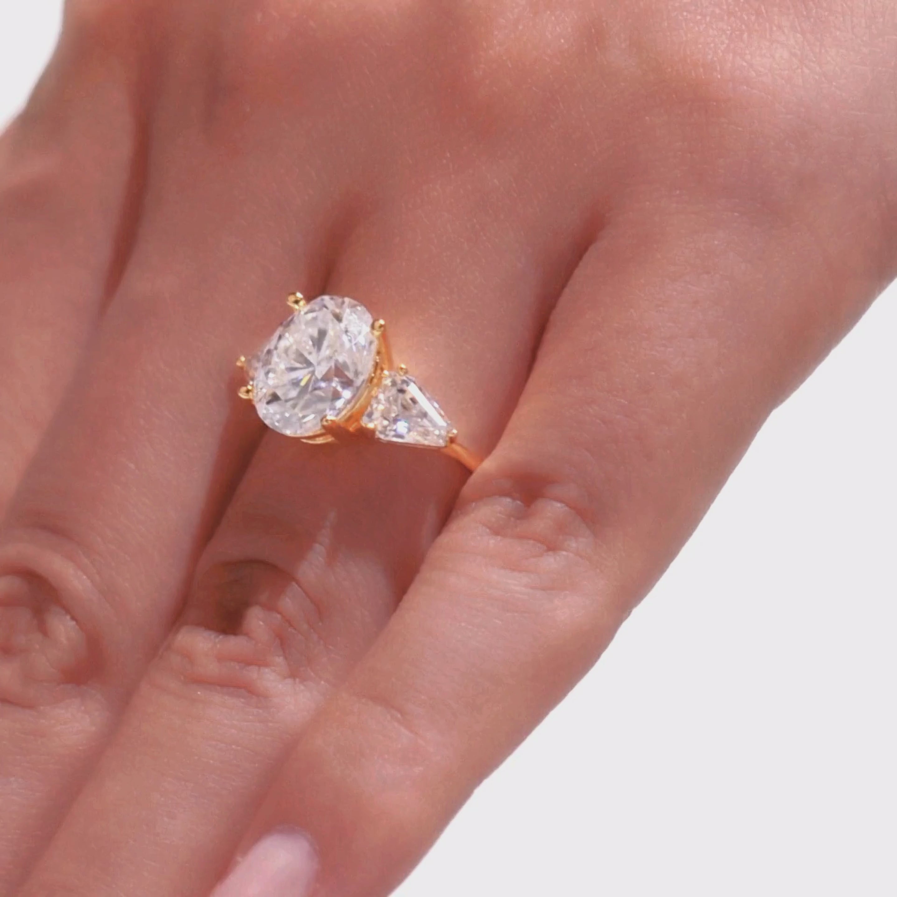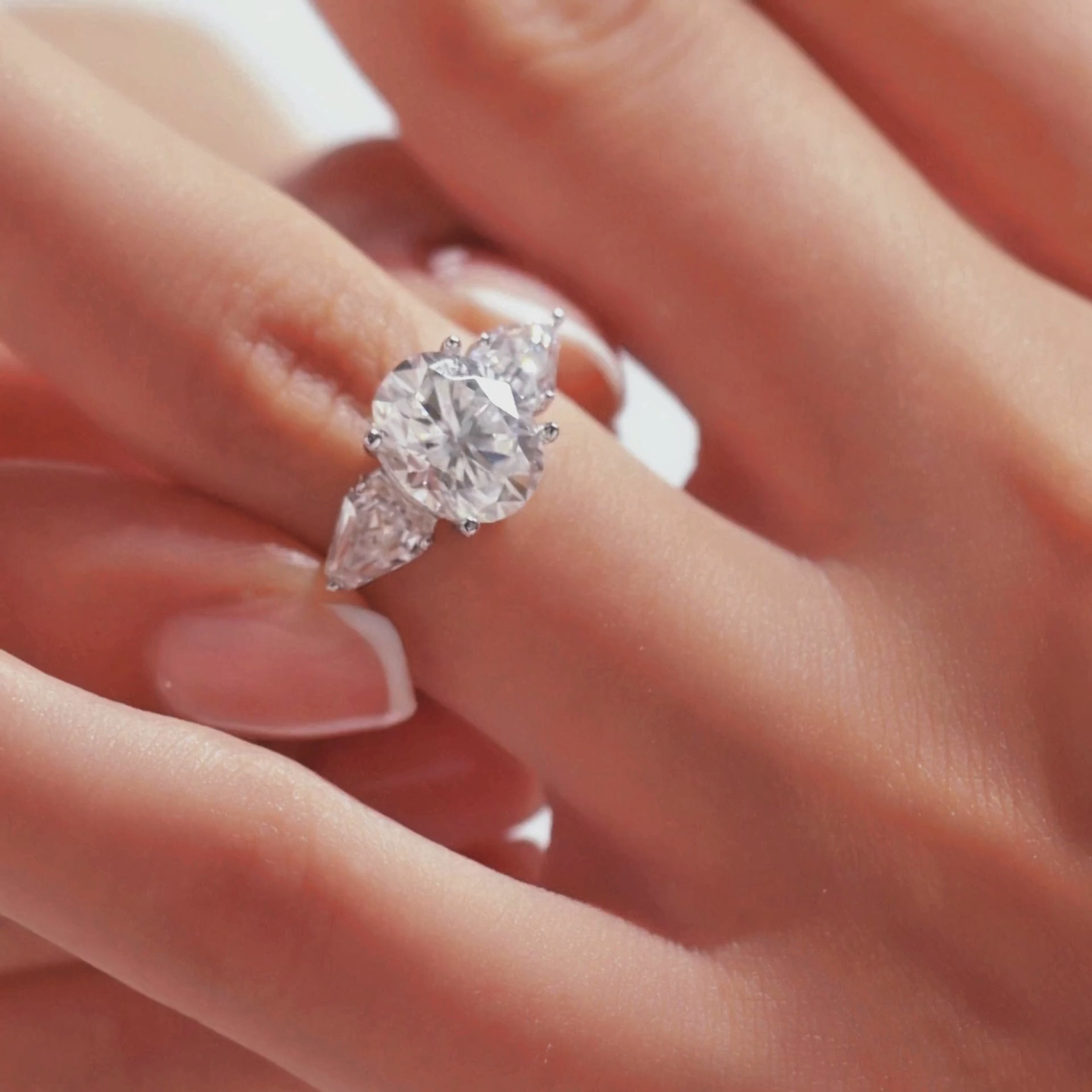 Der Evelyn präsentiert einen brillanten Moissanit im Ovalschliff, der sicher in einer Krappenfassung auf einem Band aus hochwertigem 925er Sterlingsilber sitzt. Sein Design vereint Luxus und Schlichtheit und macht ihn perfekt für den Alltag und besondere Anlässe. Die dreieckigen Akzentsteine bestehen ebenfalls aus hochwertigem Moissanit.