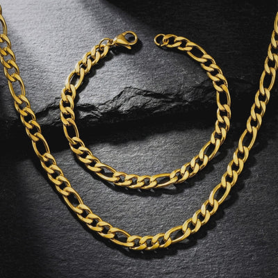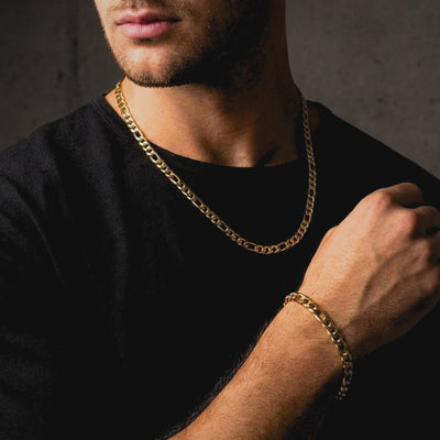 Complete your look with The Figaro Duo. This matching chain and bracelet set delivers a timeless, masculine style. Engineered from premium 316L stainless steel and finished in a durable gold coating, this set is built for daily wear. Shower in it, swim in it, forget about it. This set offers the perfect balance of durability, style, and value.