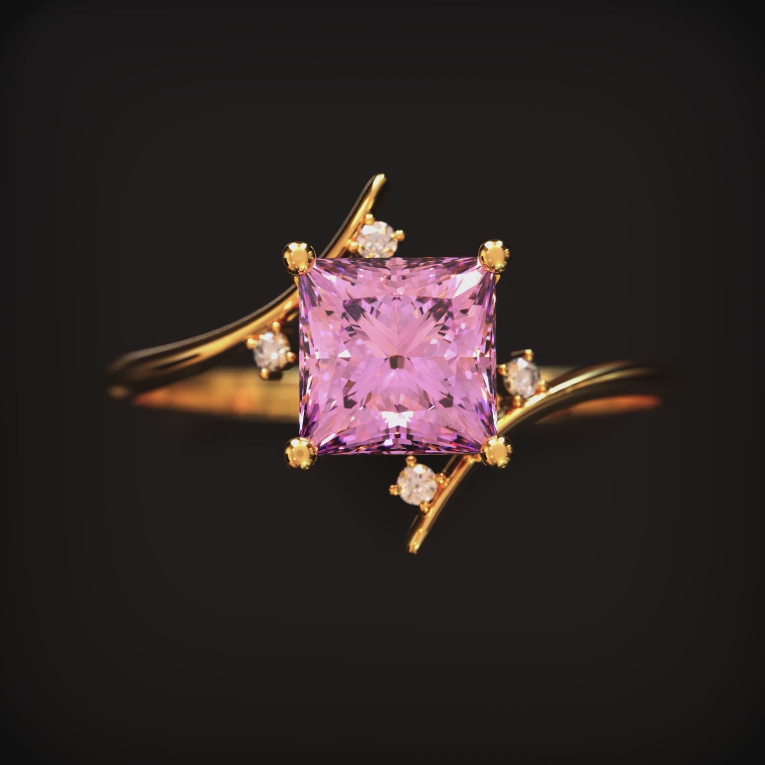 - Atemberaubendes 1CT makelloses rosa Moissanit-Mittelstück im Prinzessschliff