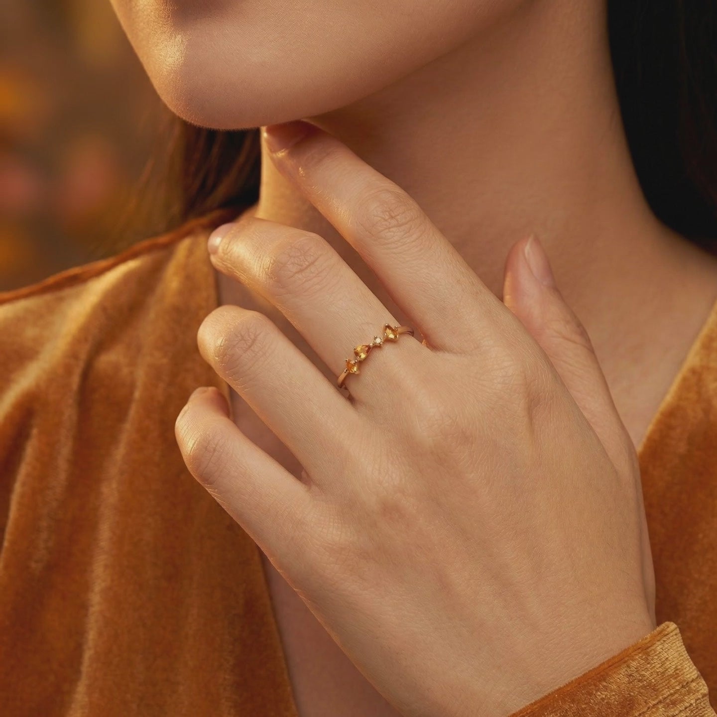 Nature rarely produces consistent color saturation. We engineered it. This November birthstone ring features Simulated Topaz stones, precision-cut to match the ideal honeyed warmth of a museum-grade gemstone. Unlike mined stones that often contain cloudy inclusions, these engineered stones offer flawless clarity and maximum light return.