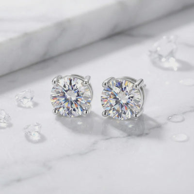 We engineered these stud earrings for the real world. Precision-cut for maximum light return and set in Solid 925 Sterling Silver. Finished with a heavy layer of Rhodium to resist tarnishing and damage from daily wear. These are built to be worn, not stored in a vault.