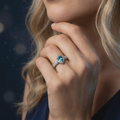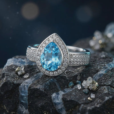 You don't need an occasion to wear extraordinary beauty; you just need the right gemstone. Meet your new signature piece. This ring features a substantial 6x8mm natural topaz, expertly faceted in a classic pear cut. Because natural topaz possesses exceptional, eye-clean transparency, our lapidaries engineered this cut to capture light from every angle, refracting a vivid Swiss Blue hue that commands attention. Achieved through safe, permanent, industry-standard color enhancement, this vibrant saturation will remain brilliant for a lifetime.