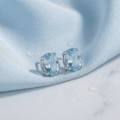 Mined aquamarine is often pale and cloud-filled. These stud earrings feature Simulated Aquamarine, color-calibrated to achieve the ideal, light blue aquamarine hue of a museum-grade heirloom. Every stone is precision-cut from A5 Grade material to ensure maximum light return and a VVS-grade clarity profile that nature rarely delivers.