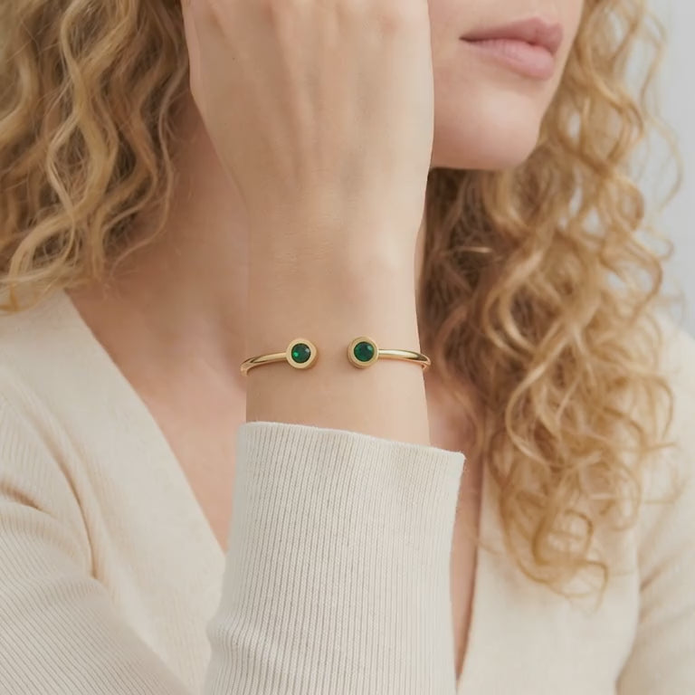 Precision-engineered to replicate the deep, vivid green of museum-grade emeralds, this Simulated Emerald cuff bracelet delivers the visual profile of a stone that would cost thousands if mined. We color-calibrated the saturation to ensure a flawless, rich green that remains vibrant and clear, rejecting the inclusions and clouds found in natural stones.