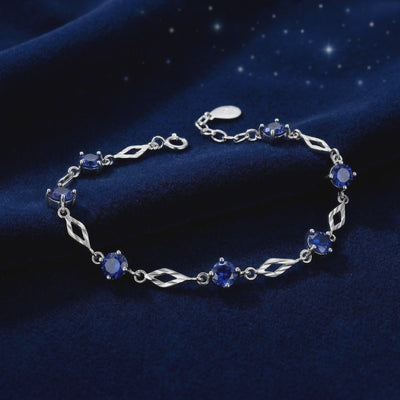 Natural sapphires often suffer from inclusions and inconsistent color bands. Our September birthstone bracelet features precision-cut Simulated Sapphires, color-calibrated to achieve the coveted "Royal Blue" benchmark with velvety saturation. Each stone is engineered from A5 Grade material to ensure flawless clarity and high-performance light return across the entire setting.