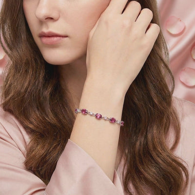 October's Pink Tourmaline is prized for its warm raspberry brilliance, yet mined stones often contain visible inclusions that dull their natural fire. We engineered a superior solution. This bracelet features precision-cut Simulated Pink Tourmaline, color-calibrated to the absolute ideal for a flawless, vivid pink profile that nature rarely delivers consistently.