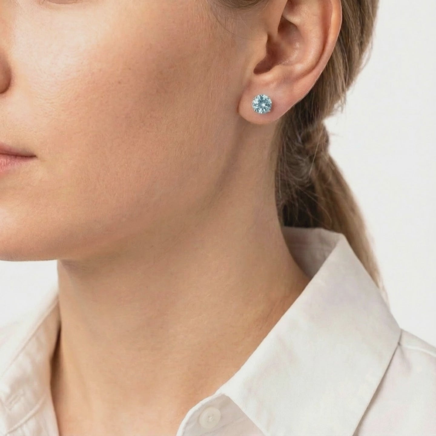 Nature rarely produces the perfect light blue hue of a museum-grade aquamarine. We engineered it. These stud earrings feature Simulated Aquamarine stones, color-calibrated to the absolute ideal for the March birthstone. Precision-cut from A5 Grade material for maximum light return, they offer a clarity and saturation that mined stones seldom reach.