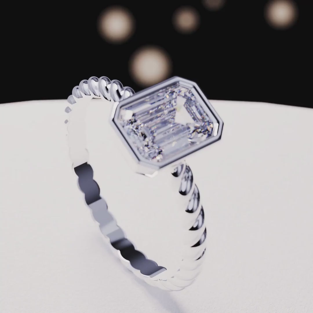 Dieser klassische Ring ist perfekt für jeden Anlass. Ob als Geschenk für sie, als Verlobungsring oder als Geschenk für Sie selbst – Sie haben es sich verdient – ​​er wird garantiert Eindruck machen. Ein strahlender, glänzender Smaragdschliff-Diamant macht diesen Ring zu einem Blickfang und wird Ihnen garantiert viele Komplimente einbringen. Der Croissant-förmig gedrehte Ring wirkt minimalistisch, elegant und klassisch. Hochwertiges Silber mit vier Platinschichten sorgt für lebenslangen Glanz und Langlebigkeit.