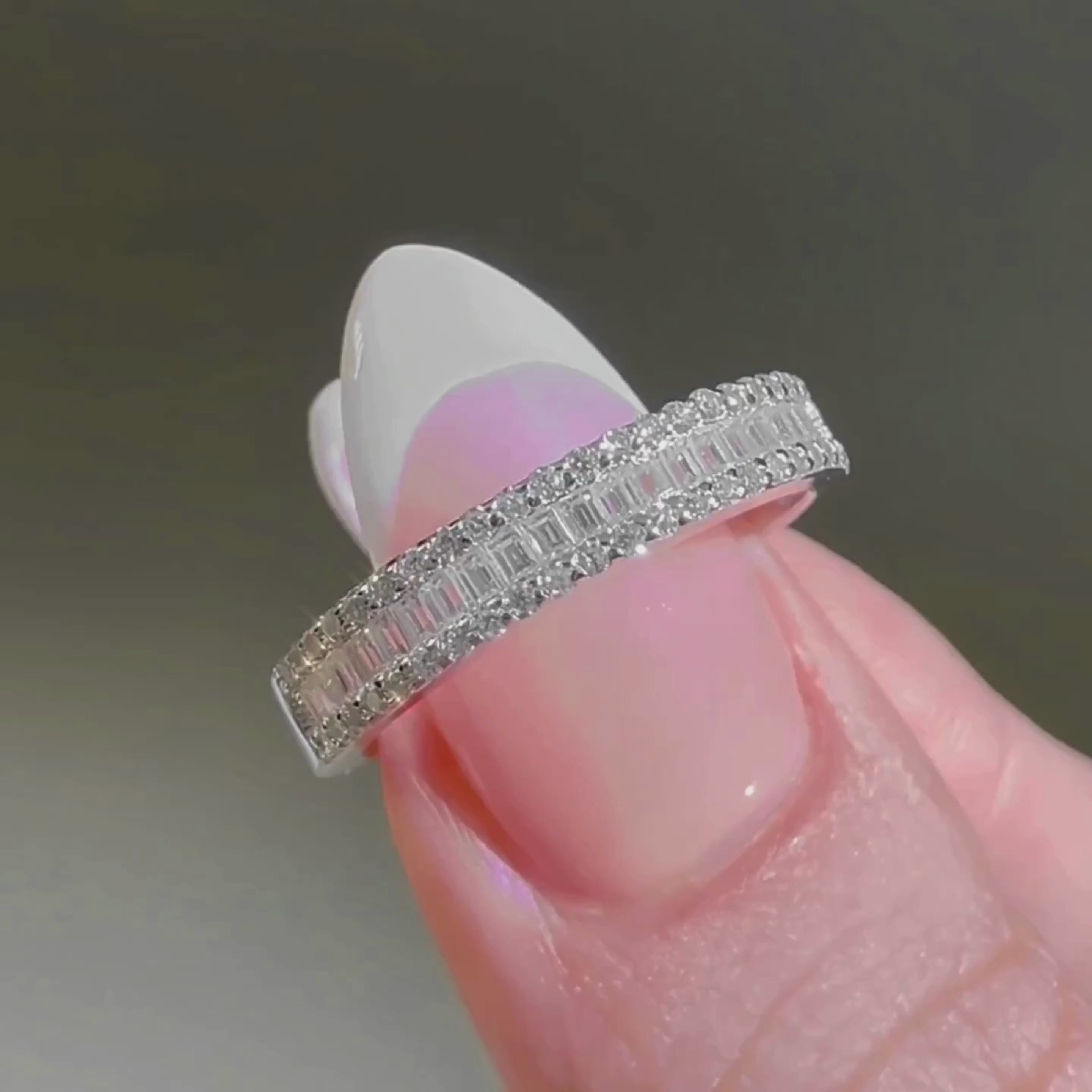 Der Spark ist eine atemberaubende Mischung aus quadratisch und rund geschliffenen Moissanitsteinen in einer eleganten Kanalfassung und bietet raffinierte Eleganz und zeitgenössischen Stil.