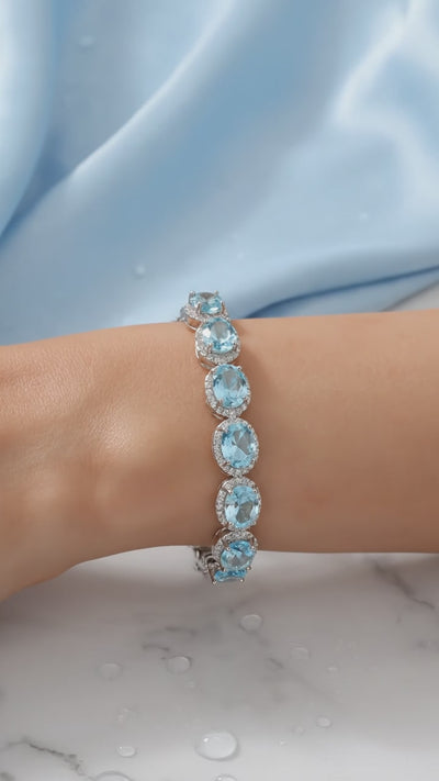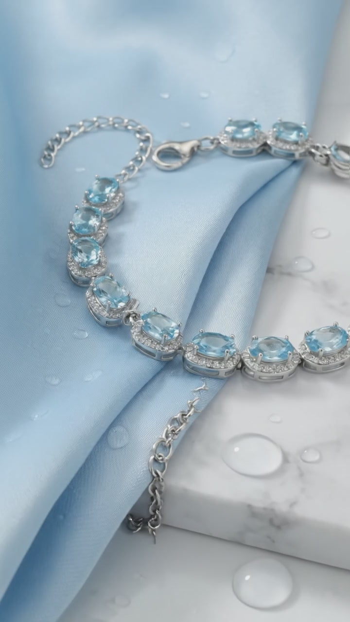 Finding a natural aquamarine with this level of clarity and consistent light blue saturation is nearly impossible. We engineered the solution. This bracelet features precision-cut Simulated Aquamarine stones, color-calibrated to represent the absolute ideal of the March birthstone.