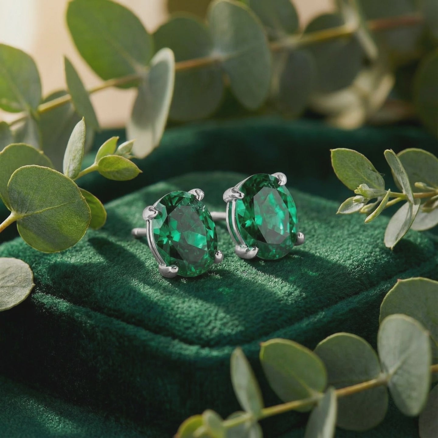 Mined emeralds are notoriously included, often appearing cloudy or containing visible cracks. These May birthstone earrings utilize Simulated Emerald, color-calibrated to achieve the deep, vivid green saturation found only in museum-grade stones. We engineered the color nature rarely delivers with consistency, providing flawless clarity and visual physics that rival high-end heirlooms.