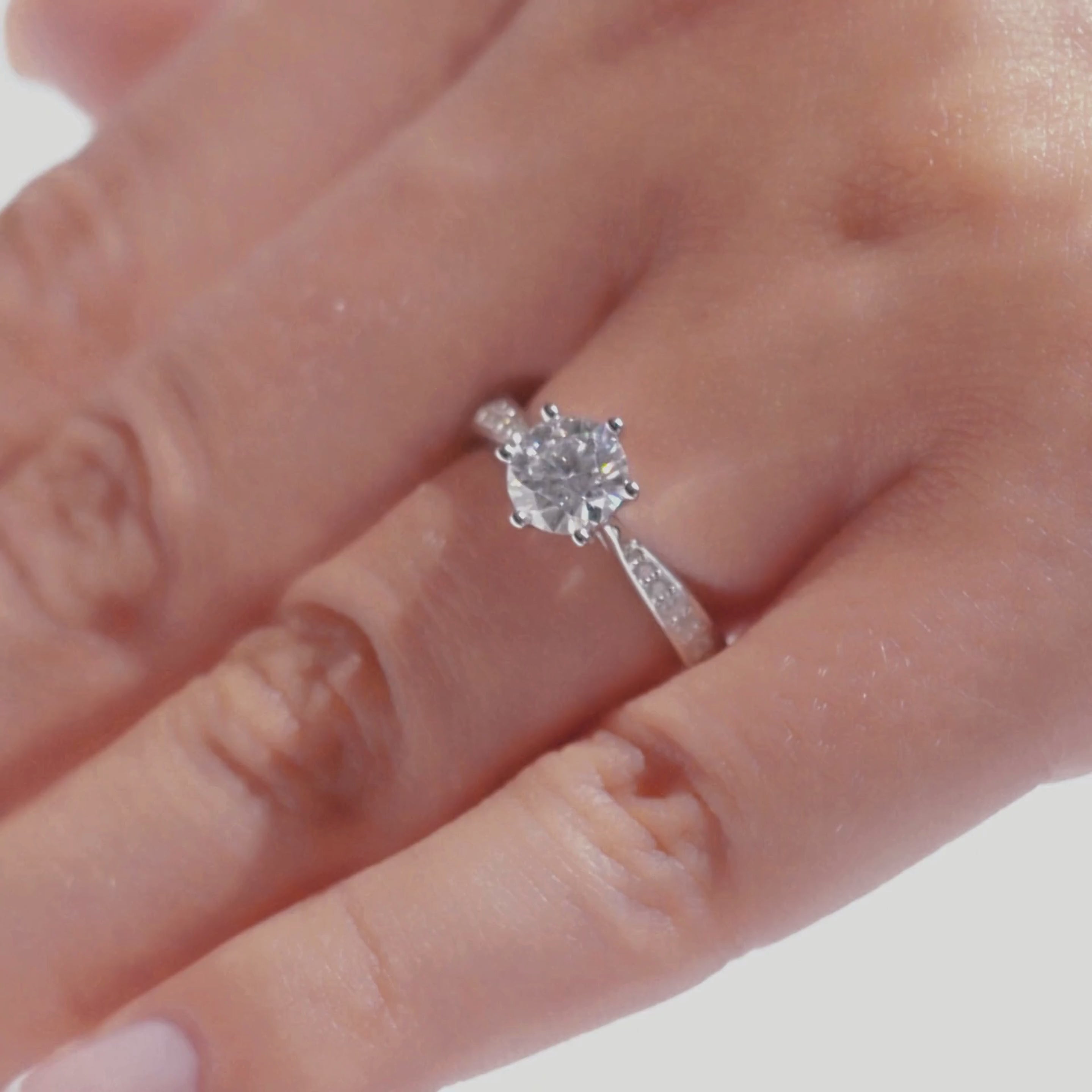 Der Vertex besteht aus hochwertigem S925 Sterlingsilber, das vierfach mit Platin beschichtet ist. Das sorgt für Langlebigkeit und ein luxuriöses Tragegefühl. Der Stein, ein erstklassiger Moissanit, wurde aufgrund seiner unübertroffenen Brillanz und der ethischen Herkunft ausgewählt. So erhalten Sie eine schöne und verantwortungsvolle Wahl ohne hohe Kosten.