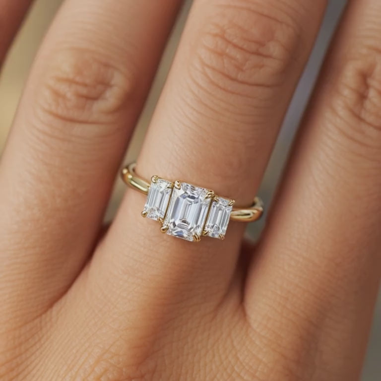 PromoThe Adelina Rae – Three-Stone Moissanite Ring