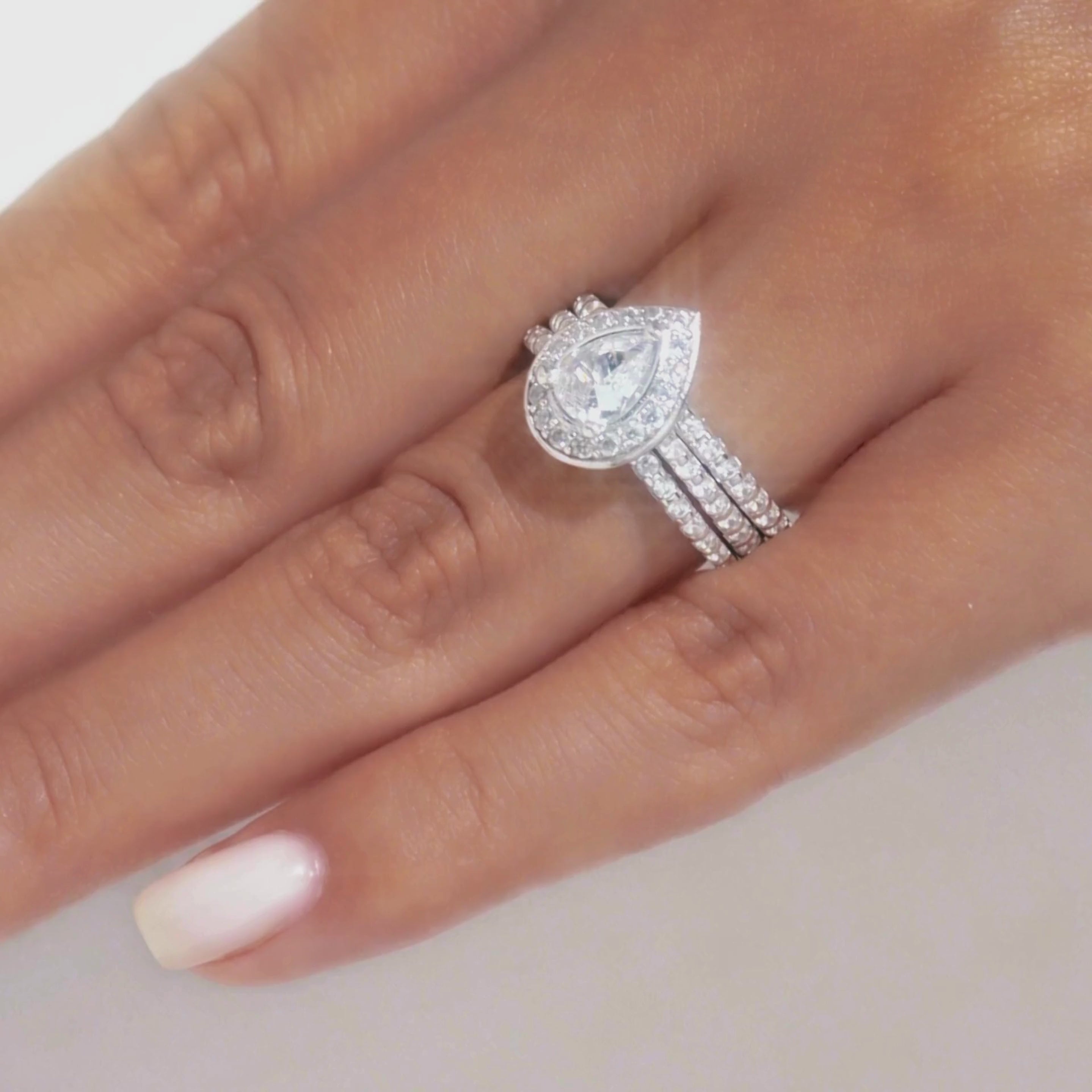 La Goutte d'eau est l'incarnation de l'élégance raffinée. Cette bague halo complète, fabriquée en argent sterling S925, est ornée de diamants simulés taille poire sertis en canal et à griffes, créant un effet halo époustouflant.