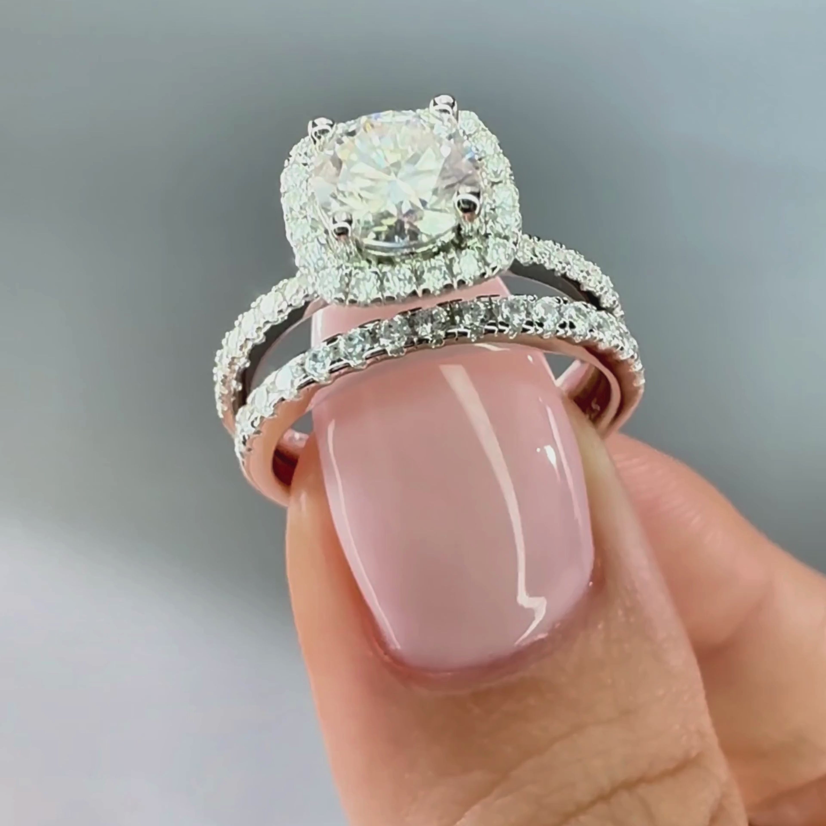 The Forevermore, l'un de nos modèles les plus vendus, incarne l'élégance intemporelle avec son design classique de bague double alliance complète sertie d'un halo.
