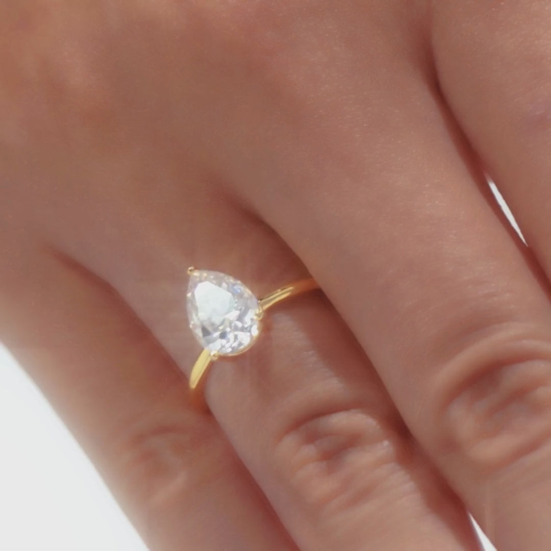 Découvrez la beauté de l'ensemble de bijoux Ava Moissanite, une collection luxueuse de trois pièces comprenant une bague moissanite taille poire, un collier pendentif avec un cœur et de délicates boucles d'oreilles en forme de cœur en moissanite.