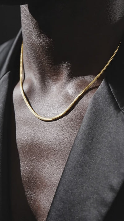 The Square Dance Chain embodies modern minimalism with its sleek, square links. It's more than just an accessory; it's a statement of engineered durability and lasting style.