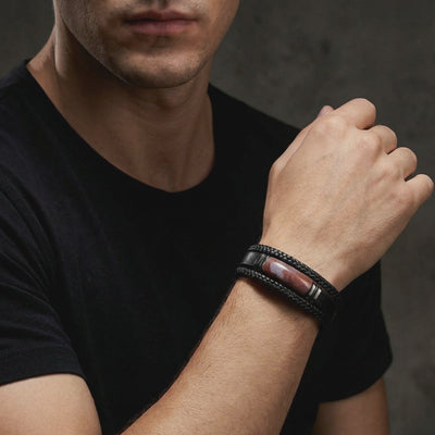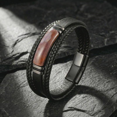 Men's jewelry is broken. Two options exist: cheap pieces that fail in months, or luxury brands charging ten times more for the same materials. We built the opposite. The Apex Leather Bracelet combines an ultra-durable 15mm braided leather band with a Swiss Watchmaker Grade 316L stainless steel centerpiece.