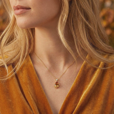 Mined topaz is often pale or inconsistent. We engineered the ideal saturation. This necklace features a precision-cut Simulated Topaz, calibrated to the warm honeyed tones of a museum-grade November birthstone. Every facet is designed for maximum light return, ensuring a deep amber glow that nature rarely delivers with this clarity.