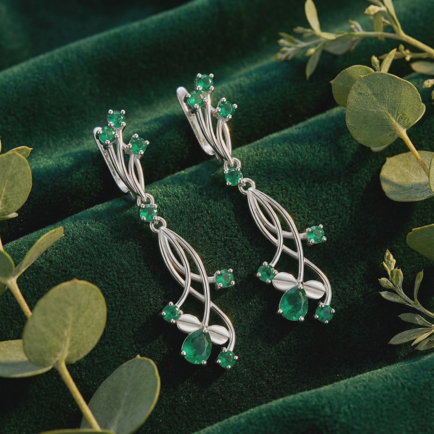 Nature is notoriously inconsistent, especially with emeralds which frequently contain "gardens" of inclusions that dull their color and compromise their structure. These drop earrings feature high-performance Simulated Emeralds, precision-engineered to match the coveted "vivid green" saturation found in museum-grade specimens. Every stone is color-calibrated for flawless uniformity, delivering a depth of color that nature rarely achieves.