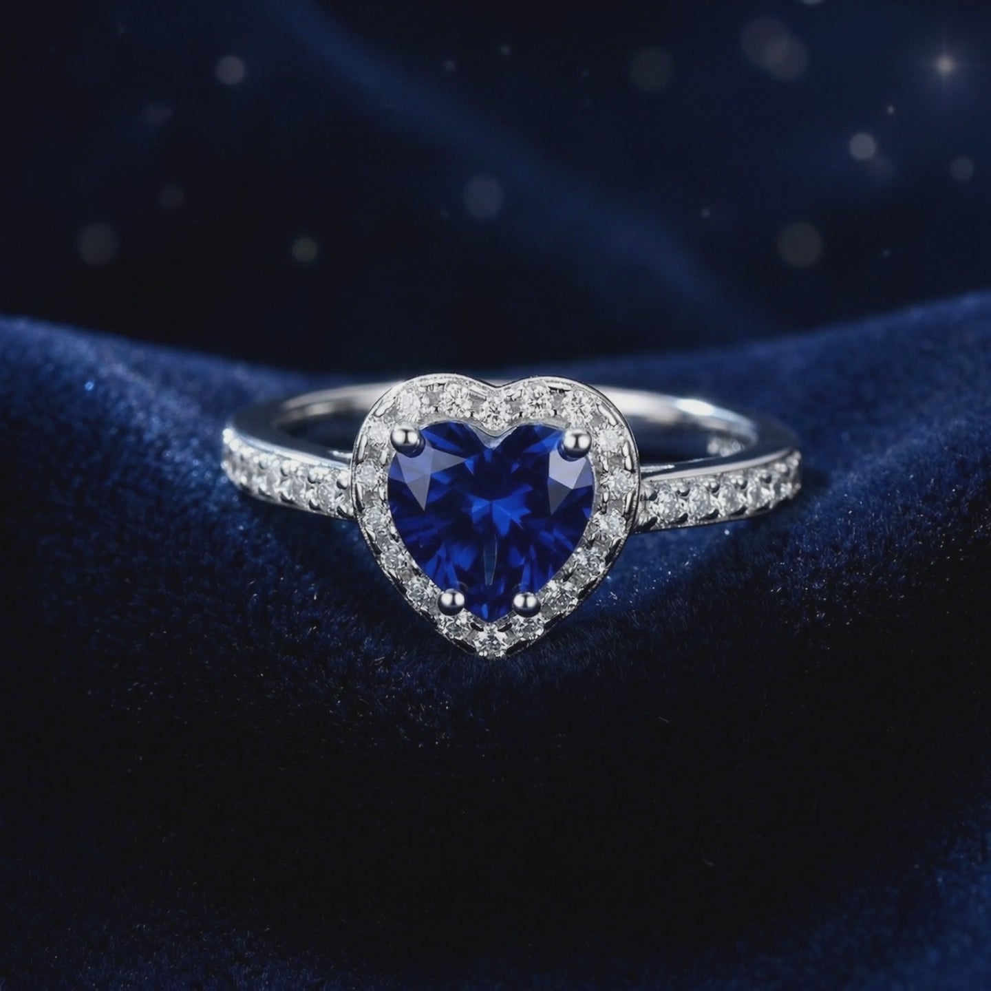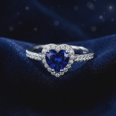 Mined sapphires are notoriously inconsistent, often appearing cloudy or too dark. We engineered the solution. This September birthstone ring features a high-performance Simulated Sapphire, color-calibrated to match the coveted "Royal Blue" benchmark found in museum-grade heirlooms. Precision-cut into a flawless heart shape, the center stone is optimized for maximum light return and deep, velvety saturation.