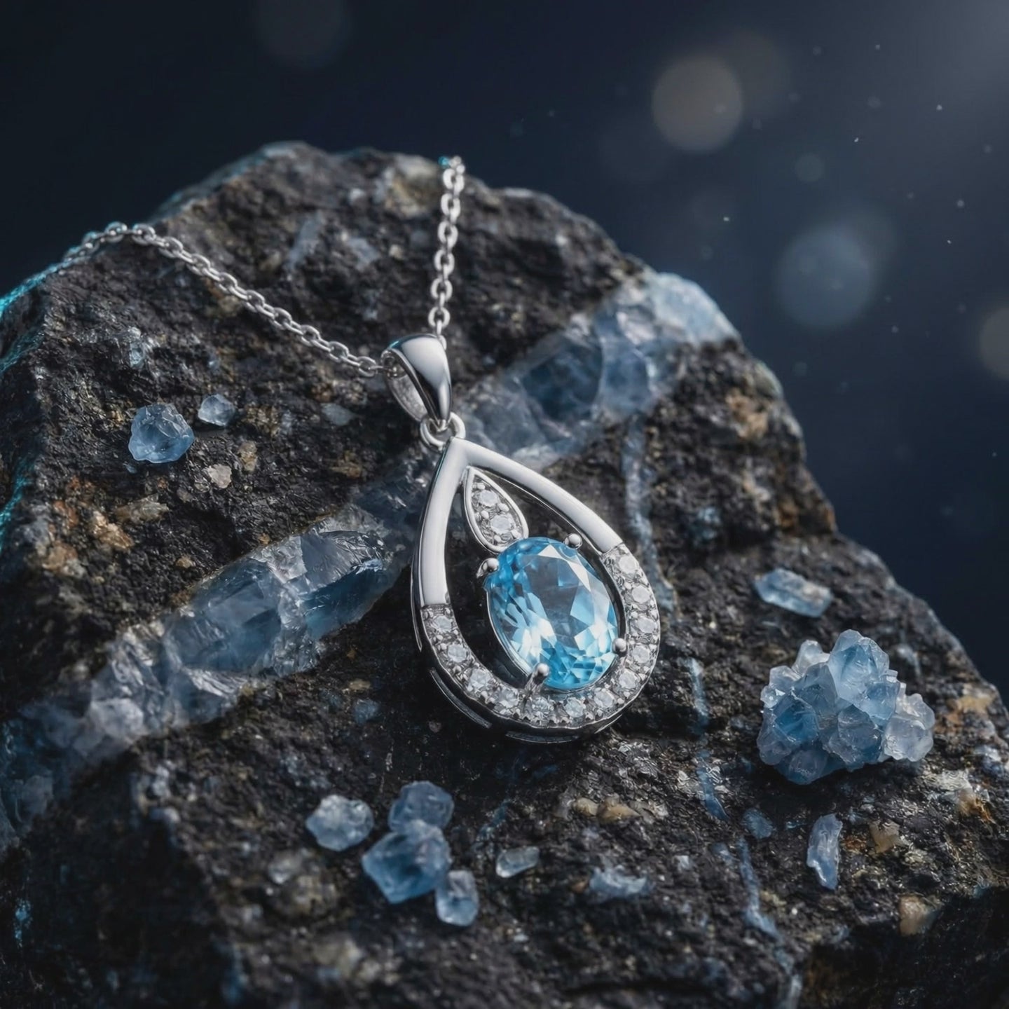- Primary Gemstone: Certified Natural Blue Topaz (7x9mm, Oval Cut)