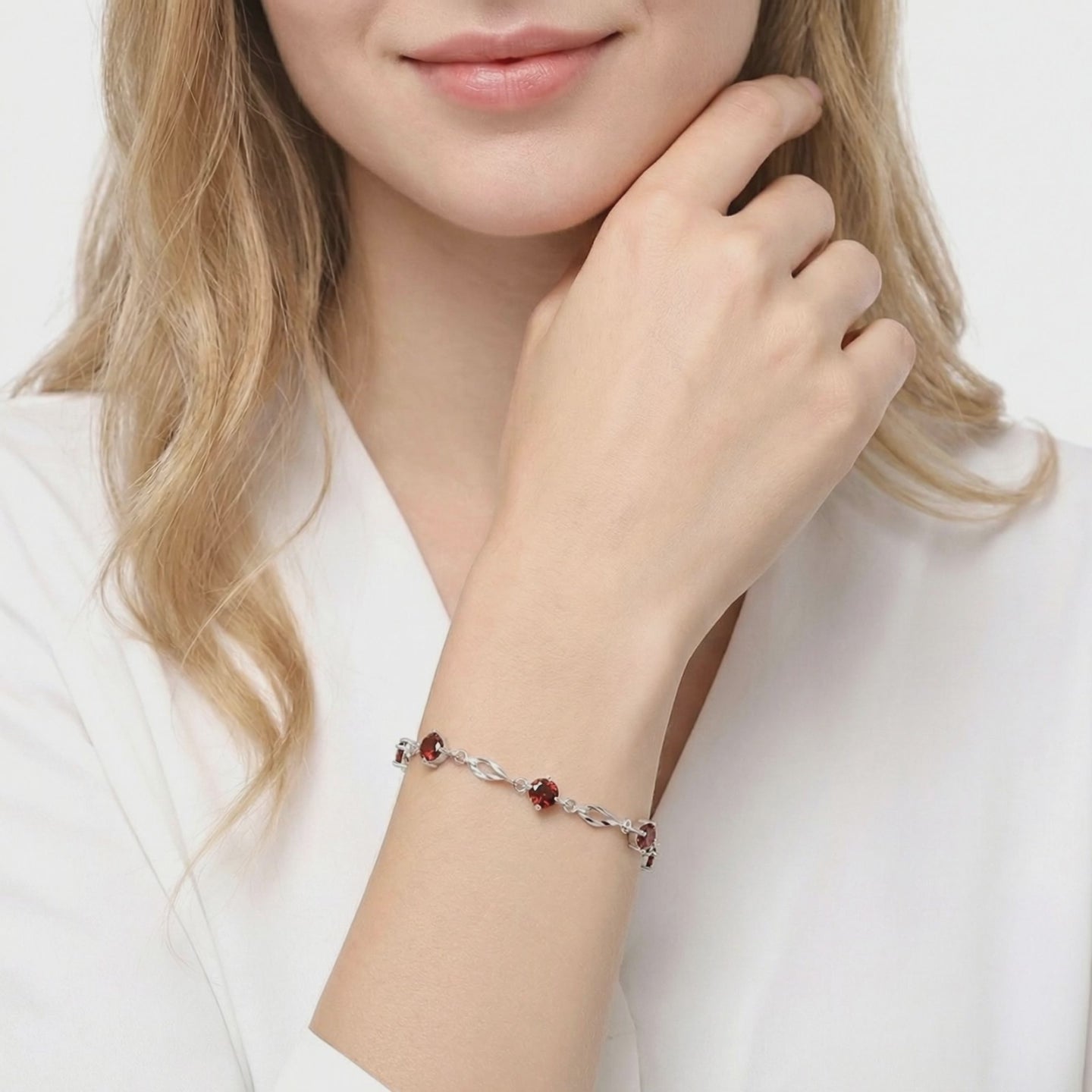 Natural garnets often suffer from inconsistent color and internal inclusions. We engineered the solution. This January birthstone bracelet features precision-cut simulated garnet, color-calibrated to achieve a deep, museum-grade crimson saturation that nature rarely provides with such clarity.