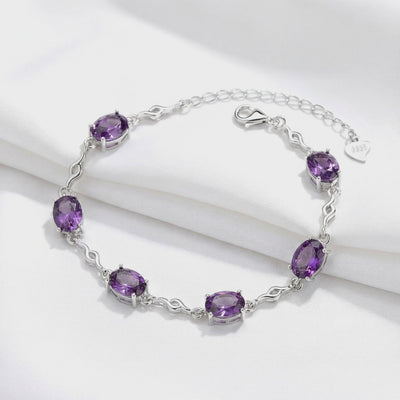 Mined amethysts are frequently inconsistent, showing pale patches or cloudy inclusions. This bracelet features precision-cut Simulated Amethyst, engineered for deep, uniform violet saturation and VVS-grade clarity across every stone. We calibrated the color to match museum-grade African Amethyst without the rarity tax.
