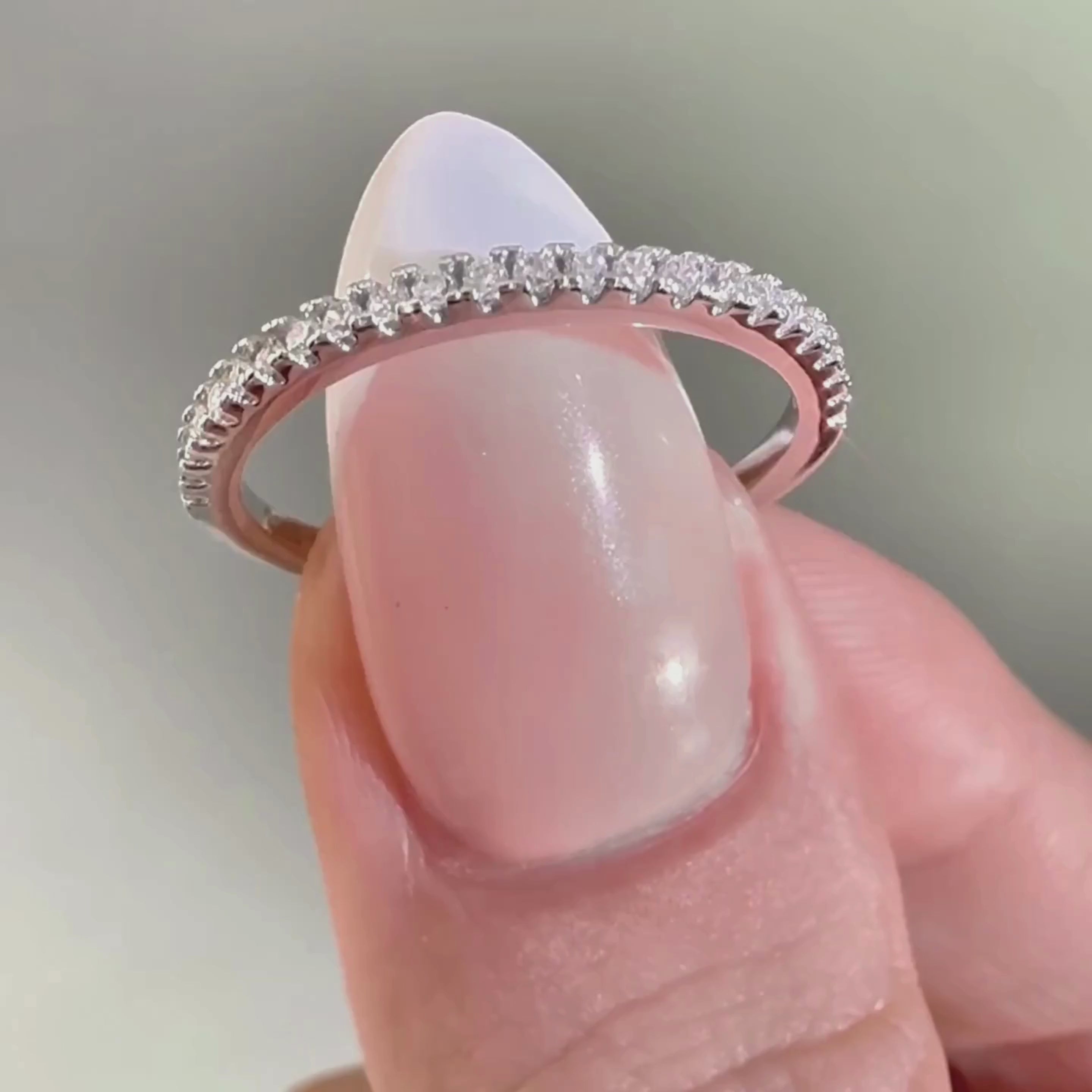 The Ethereal met en valeur une beauté délicate avec son design classique demi-éternité. Fabriqué en argent sterling S925, il présente des diamants simulés taille ronde dans un sertissage en canal pour un éclat gracieux.