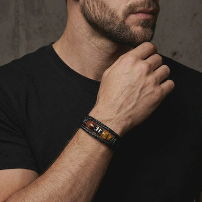 Men's jewelry shouldn't be complicated. We built The Fortitude Leather Bracelet to be your everyday armor. It combines premium 15mm braided black leather with heavy-duty 316L Swiss Watchmaker Steel. The result is a masculine piece that stands up to daily wear without losing its edge.