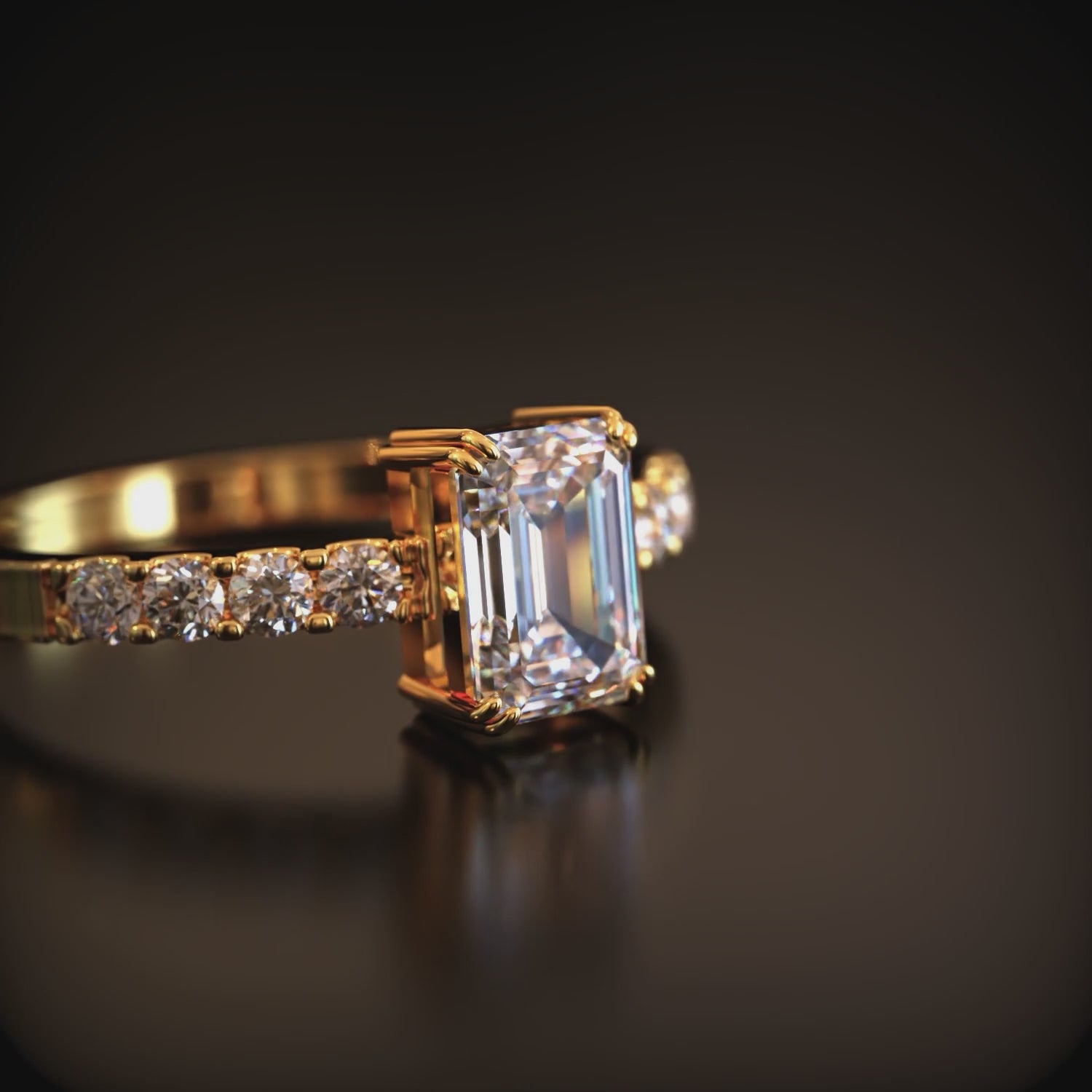 - CT Size: The Kiera Belle features a 1 CT Emerald Cut Moissanite. We accept custom requests if you wish for a different CT size. Check the details above for specifics on this ring.